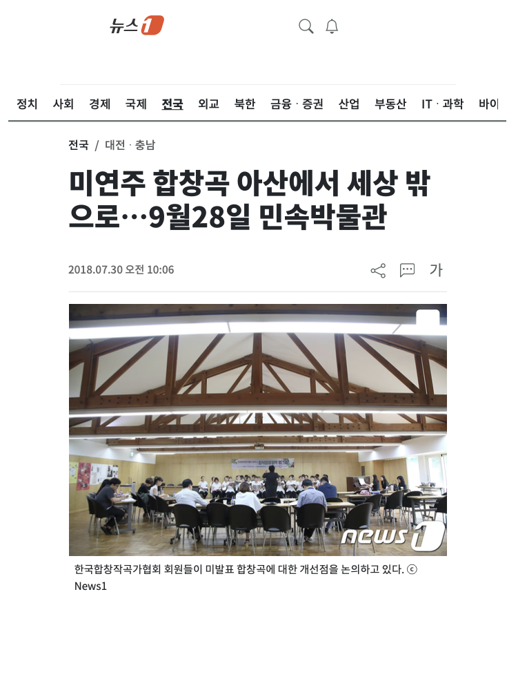 (대전ㆍ충남=뉴스1) 유창림 기자 = 국내에서 초연되지 않은 합창곡들이 9월 28일 온양민속박물관에서 처음 공개된다.